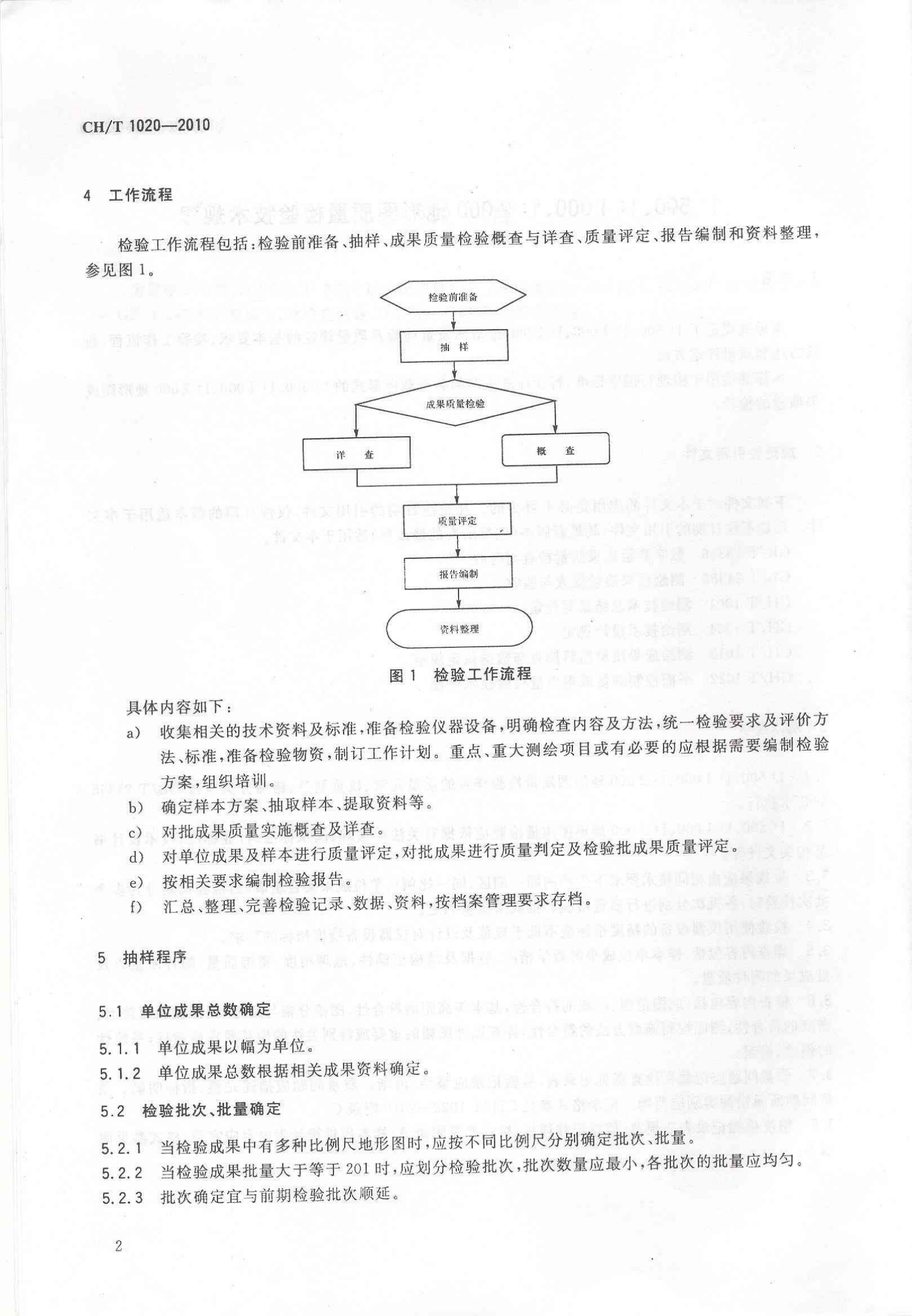 CH/T 1020-2010《1:500 1:1 000 1:2 000地形图质量检验技术规程》是由原国家测绘局于2010年11月26日发布、2011年1月1日实施的测绘行业推荐性标准。该标准规定了1:500、1:1 000、1:2 000地形图质量检验及质量评定的基本要求,建立了质量检验的工作流程、抽样程序、检验内容及方法、质量评定方法以及检验报告编制与资料整理等内容框架。该标准适用于按现行国家标准、行业标准生产的各种载体形式的1:500、1:1 000、1:2 000地形图成果质量的检验,也是开展大比例尺地形图成果验收工作的重要技术依据,为保障大比例尺地形图成果质量提供了规范化的检验标准。