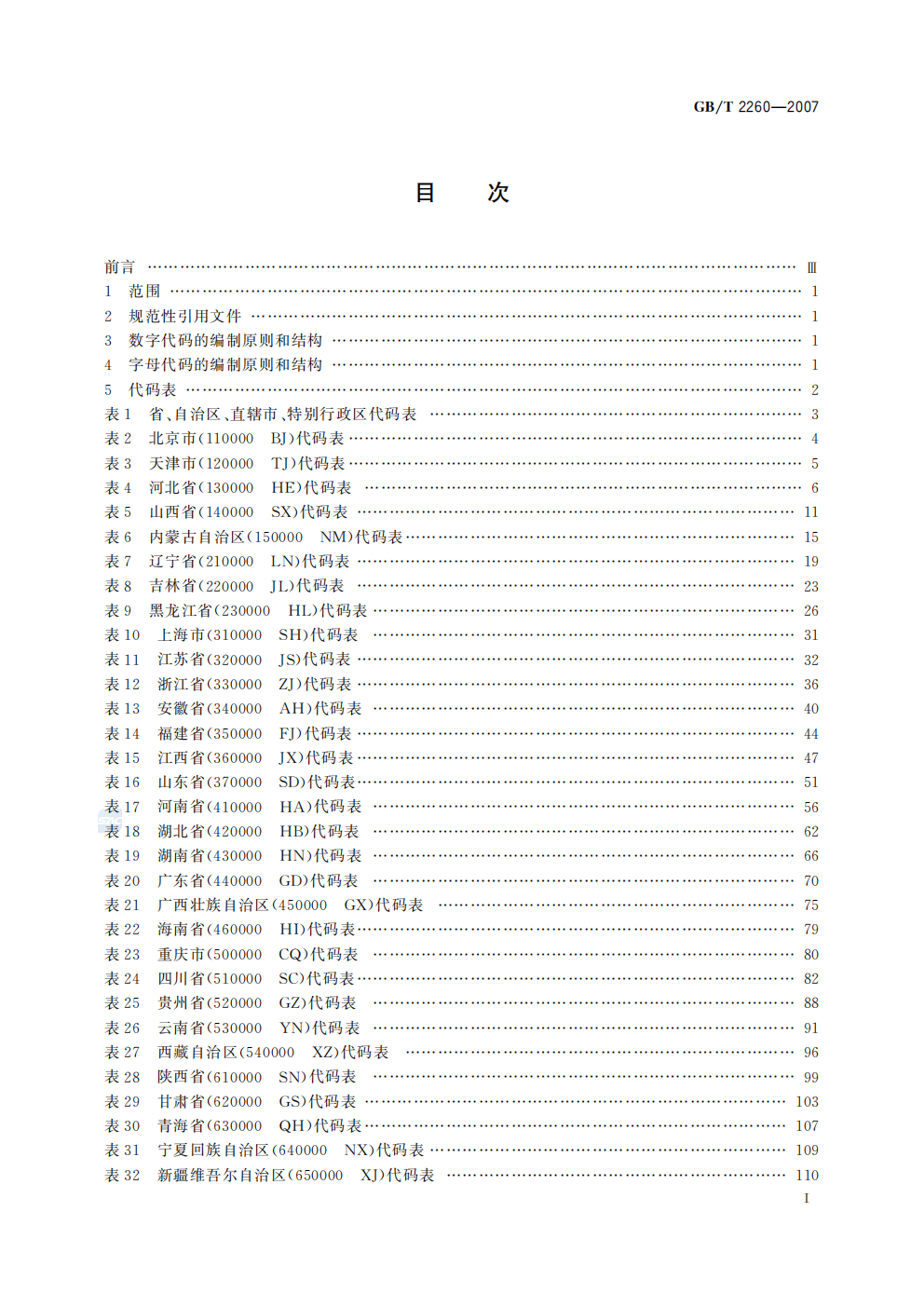 GB/T 2260-2007《中华人民共和国行政区划代码》于2007年11月14日发布,2008年2月1日起实施,由全国信息分类与编码标准化技术委员会归口,中国标准化研究院和民政部区划地名司共同起草。该标准规定了我国县级及县级以上行政区划的数字代码和字母代码,适用于行政区划的标识、信息处理和交换-。数字代码采用六位层次结构:第一、二位表示省级(省、自治区、直辖市、特别行政区),第三、四位表示地级(市、地区、自治州、盟),第五、六位表示县级(县、自治县、市辖区等)。字母代码则参照行政区划地名的汉语拼音,用三位字母缩写表示。该标准自1982年颁布实施以来,已广泛应用于计划、统计、人口普查、社会保险、教育、人事管理等诸多领域,是我国现代化管理中的一项重要基础标准。